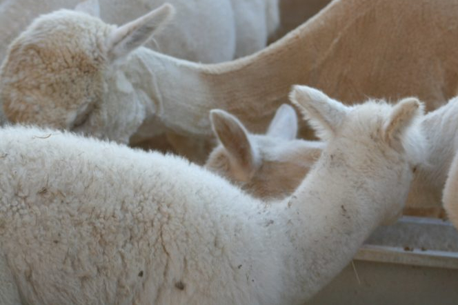 I made them wait. I surf around the alpacas, bucket in hand, tiding the area, spacing the feeders. The alpacas are very calm but confused: Where’s the food? They follow me around trying to figure out what I’m doing, waiting for the music of pellets dropped over the metal. With the first sound, they dart after me, moving from feeder to feeder as I distribute the food, picking a bite of each serving, and pushing one another as they decide their rightful feeding spot.