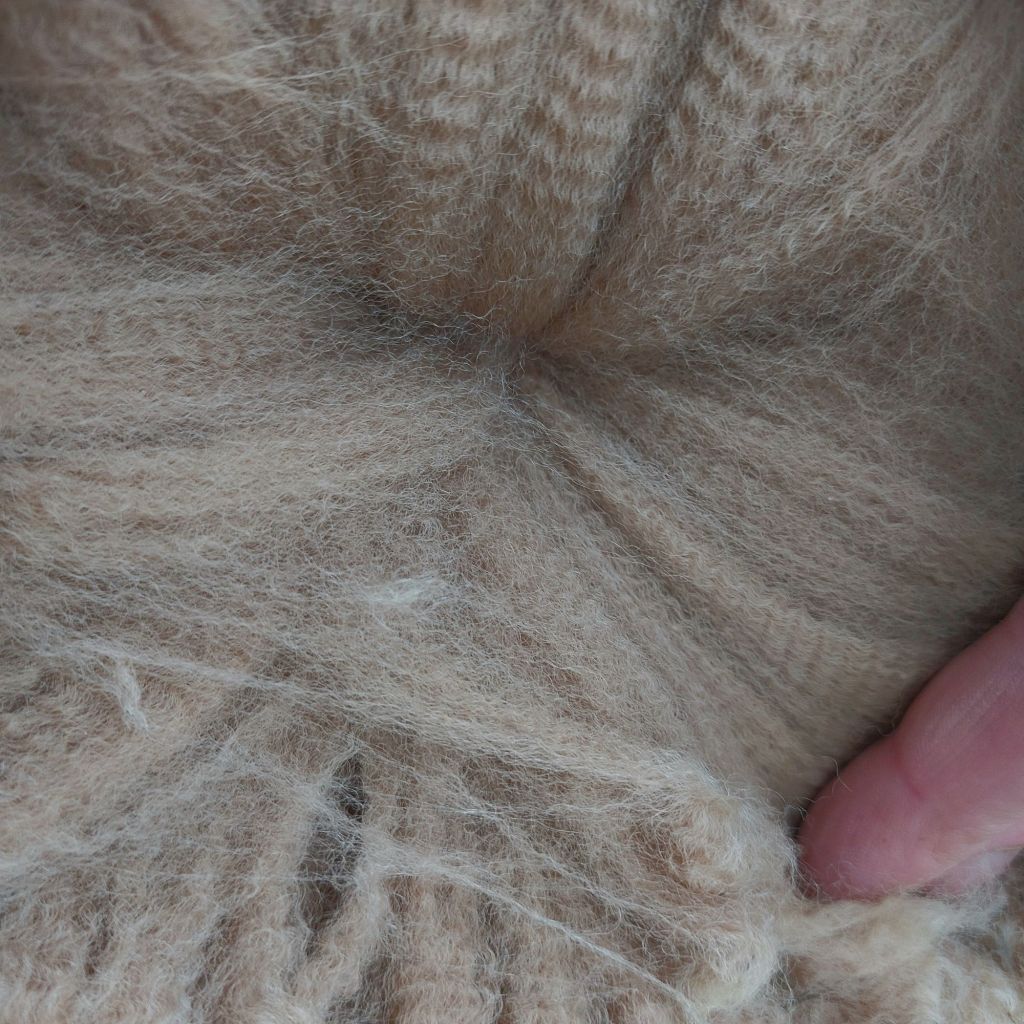 It may not look any particular to many people. This fleece belongs to an incredible animal. Her temper is amazing, her conformation is perfect, her fleece is super dense and very fine for her age. However, one of these things in life, the DNA test cannot prove the identity of her sire.