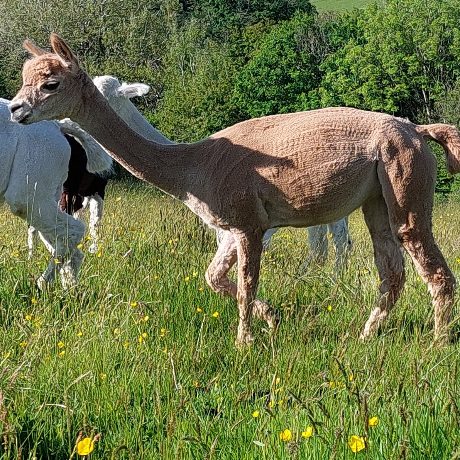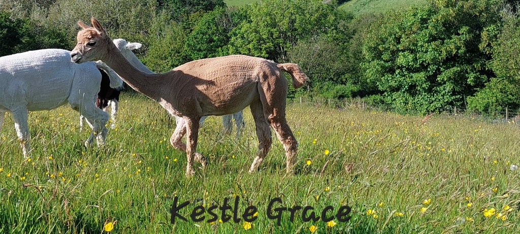 Here is a picture of Grace, from which we expect the first birth of the year, her first cria, and we’re betting for grey.