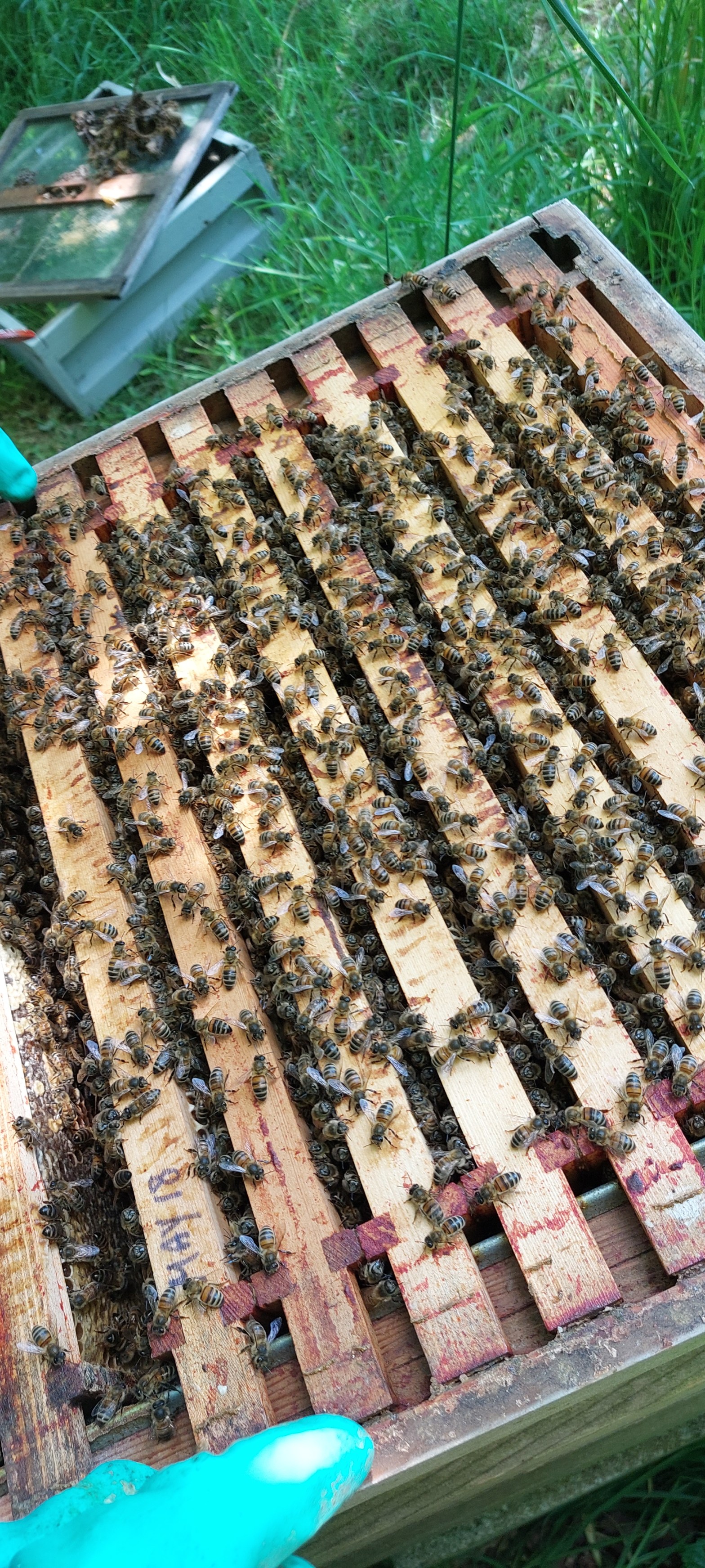 Here are some pictures taken during the inspection. The queen is very healthy and prolific. We shall have plenty of honey and bees.