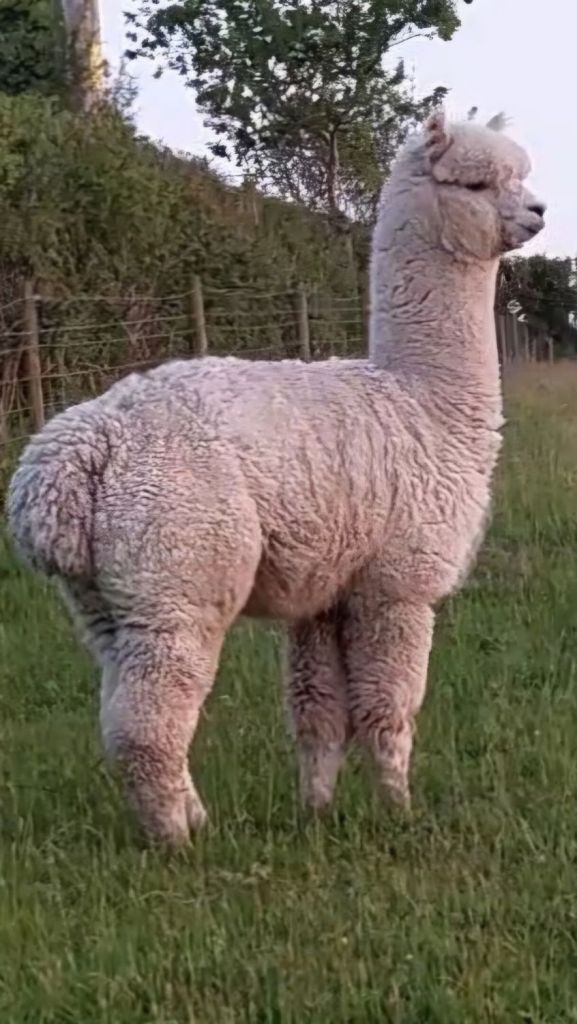 Ameera has produced many of our animals, so she is released to make way for new blood lines. She is a white prolific female that passes on colour, and beautiful crias.